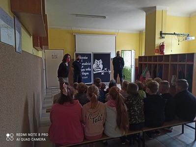 Dzisiaj policjanci KPP w Kolnie spotkali się z uczniami klas 0-III. Była to doskonała okazja, aby poprzez zabawę przypomnieć o podstawowych zasadach bezpieczeństwa na ulicy, w szkole, w domu. Dziękujemy naszym gościom!!