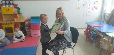 Dnia 13 pażdziernika Dyrektor Gminnej Biblioteki Publicznej w Czerwonem Pani Teresa Skrodzka odwiedziła uczniów oddziału przedszkolnego w Wykowie.