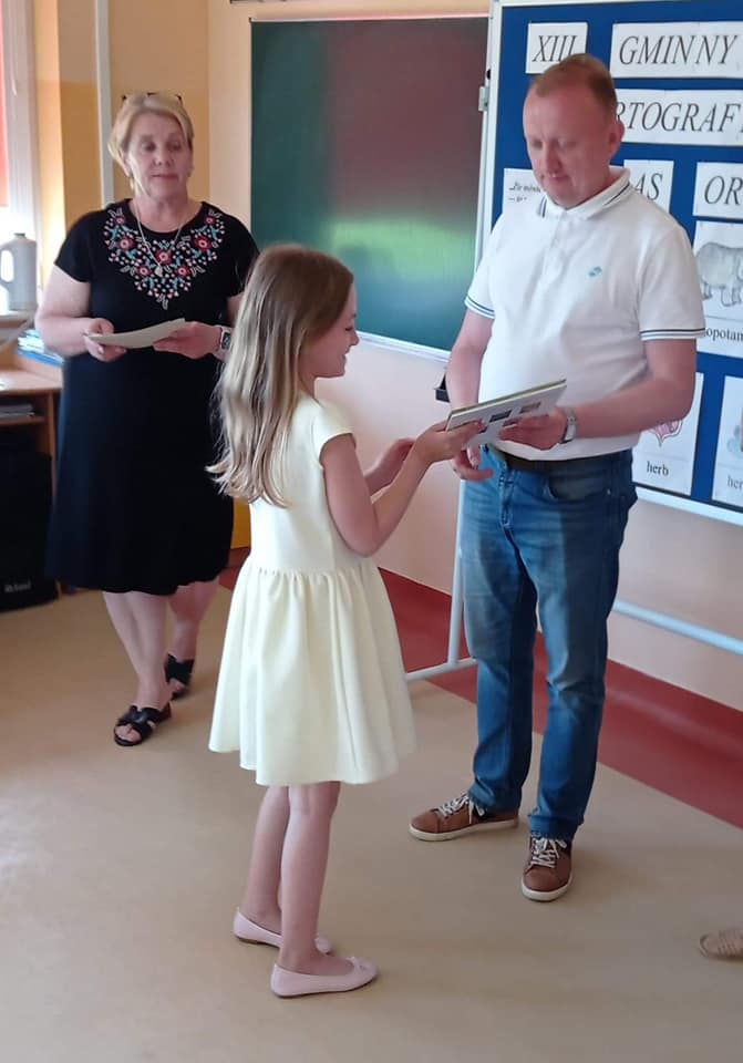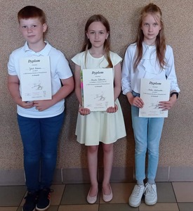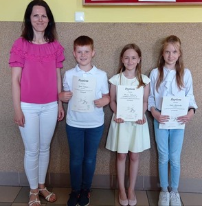 Dnia 09.06.2022 r. uczniowie naszej szkoły: Emilia Malinowska, Klaudia Dąbkowska i Jakub Nadara wzięli udział w XIII Gminnym Konkursie Ortograficznym pt. "As Ortografii". W kategorii klas III PIERWSZE MIEJSCE ZAJĘŁA: KLAUDIA DĄBKOWSKA. Dziękujemy Szkole Podstawowej w Lachowie za zorganizowanie konkursu, a wszystkim uczestnikom serdecznie gratulujemy.