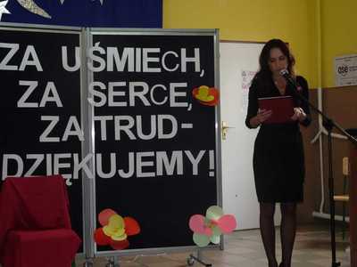 Dnia 13 października bieżącego roku w naszej szkole świętowaliśmy Dzień Edukacji Narodowej. Z tej okazji na terenie szkoły odbył się uroczysty apel, który był swoistym podziękowaniem za trud wkładany przez Nauczycieli w codzienną pracę, edukację i wychowanie młodego pokolenia. Dziękujemy uczniom za zaangażowanie w przygotowanie uroczystości, za składane w tym dniu życzenia oraz upominki, które umiliły nam Nauczycielom i Pracownikom szkoły ten jakże ważny dzień.