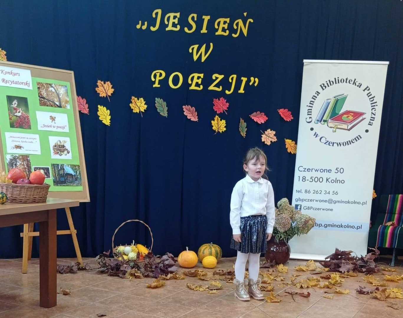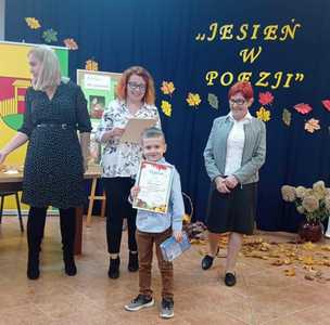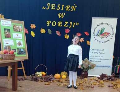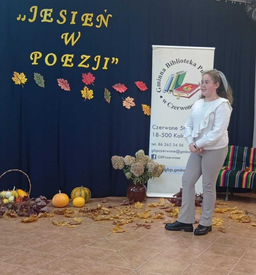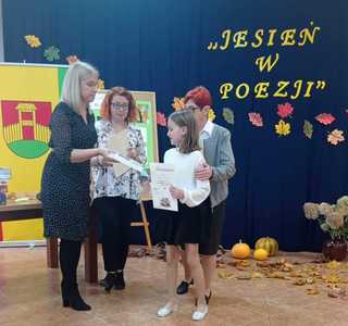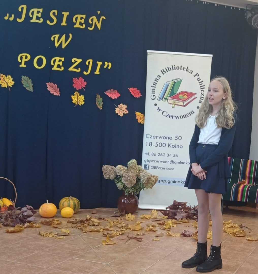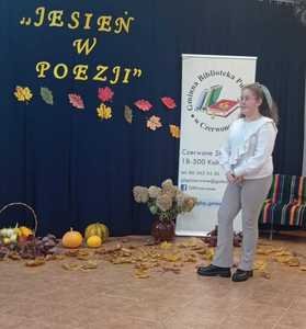 We wtorek 25 października odbył się finał XIII edycji konkursu recytatorskiego "Jesień w poezji" organizowanego przez Gminną Bibliotekę Publiczną w Czerwonem. Wśród uczestników finału nie zabrakło również uczniów z naszej szkoły, którzy pięknie zaprezentowali wybrane przez siebie wiersze oraz dumnie reprezentowali nasz szkołę. Zdobyte nagrody i dyplomy będą wspaniale zdobić półki naszych laureatów.