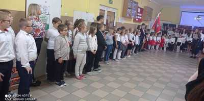 w każdym z nas wywołuje szereg emocji. Od zadumy i powagi poprzez szacunek do minionych wydarzeń. Tego dnia nasza Ojczyzna po długich latach odzyskała Niepodległość, a wraz z nią my Polacy swoją tożsamość. Ten dzień jest szczególnie ważny dla każdego Polaka. Można go świętować na różne sposoby : wywieszając Flagę Narodową, modląc się za Ojczyznę czy biorąc udział w Apelu upamietniającym ważne dla Polski wydarzenia. Po raz kolejny społeczność Szkoły Podstawowej im. Orła Białego w Wykowie wzięła udział w akcji MEiN #SzkolaDoHymnu. Apel rozpoczął się o godz. 11.11 odśpiewaniem Hymnu Narodowego. Następnie odbył się pokaz patriotyczny przygotowany przez uczniów klas VII i VIII oraz najmłodszych patriotów z oddziału przedszkolnego. Dalsza część artystyczna ukazywała trud polskich żołnierzy i ludzi biorących udział w walce o nasza Kochaną Niepodległą Polskę. Za przygotowanie uroczystości dziekujemy P. Adamowi Grzymale, Panu Grzegorzowi Jakubowskiemu oraz Pani Marioli Jakubczyk.