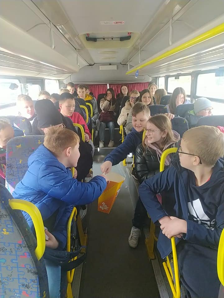Po zakończonym seansie zrobiliśmy sobie pamiątkowe zdjęcia i udaliśmy się na przystanek, na którym czekał już na nas autobus. Przez całą drogę powrotną trwały rozmowy na temat obejrzanego filmu, który zrobił na uczniach ogromne wrażenie. Wszyscy pełni wrażeń wróciliśmy do szkoły.