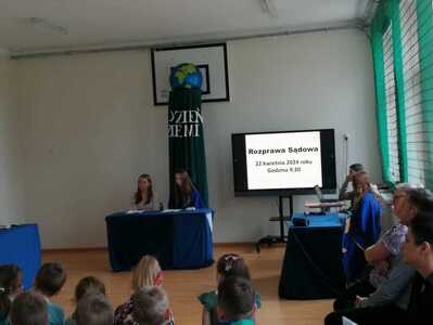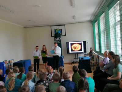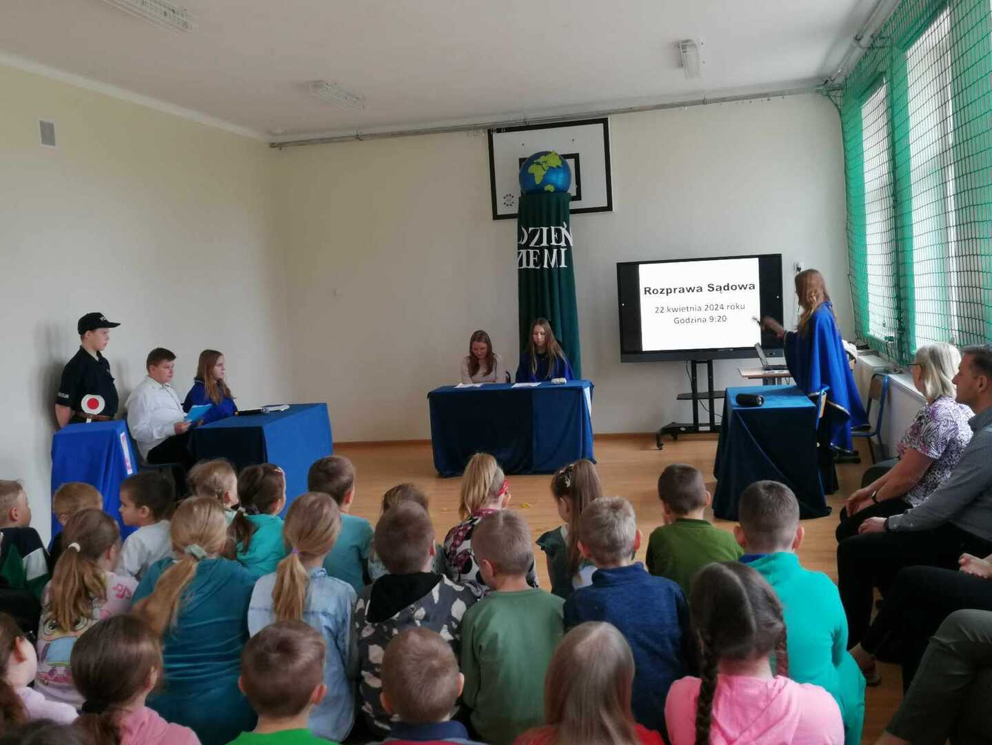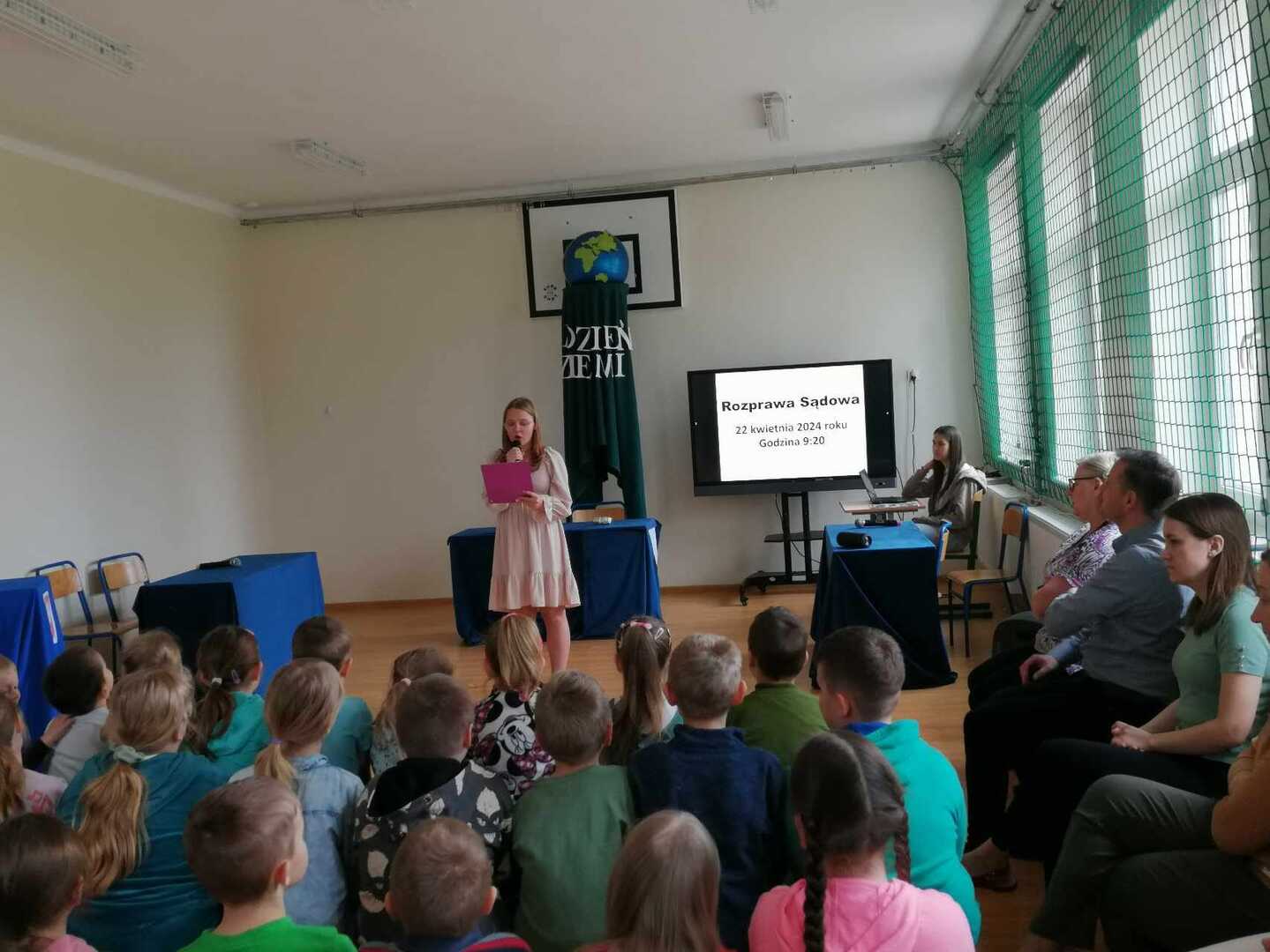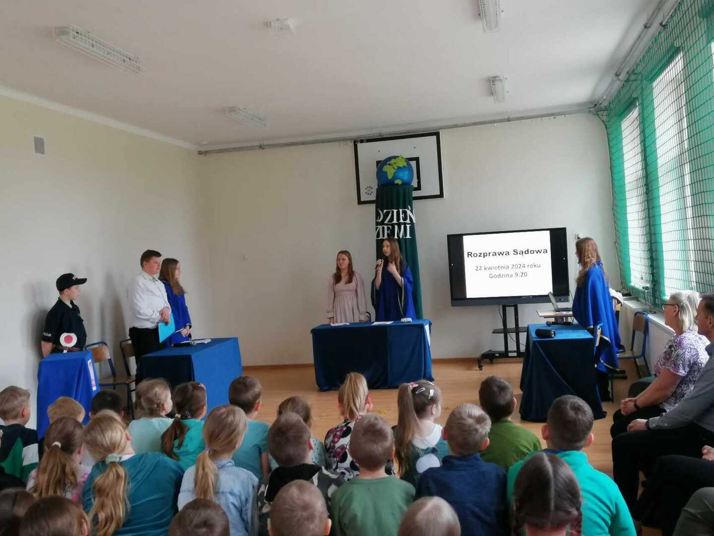 Dnia 22 kwietnia, z okazji Dnia Ziemi, uczniowie naszej szkoły z klas V – VIII przygotowali i przedstawili dla całej społeczności szkolnej inscenizację oraz prelekcję na temat poszanowania przyrody. Działania te miały na celu przypomnieć wszystkim, że każdego dnia należy dbać o środowisko i nasz kruchy ekosystem. Tego dnia dyrektor szkoły wręczył nagrody uczniom, którzy godnie reprezentowali szkołę w gminnym konkursie ,,Działamy z misją przeciw emisjom”.