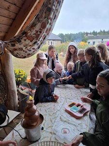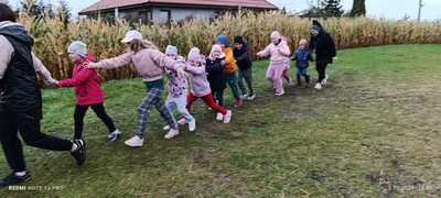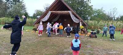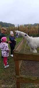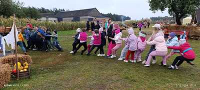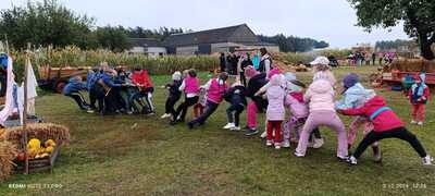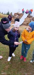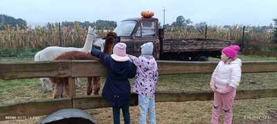 Na miejscu czekało mnóstwo atrakcji: zabawy ruchowe - prowadzone przez panie animatorki, zwiedzanie galerii lampionów, pakowanie prażonej kukurydzy, wycinanie dyni, ognisko z pieczeniem kiełbasek. Można było również podziwiać alpaki i króliki, znajdujące się w zagrodzie. Mieliśmy też okazję spróbować dyniowych babeczek, kupić dżemy i soki.