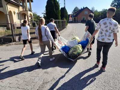 Szkoła Podstawowa im. Orła Białego w Wykowie przystąpiła do 31 Akcji Sprzątania Świata 2024. W piątek 20 września wyruszyliśmy w teren, siły rozłożono równomiernie, dzięki czemu udało nam się posprzątać zaśmiecone miejsca wsi Wykowo, a także dalszych okolic.