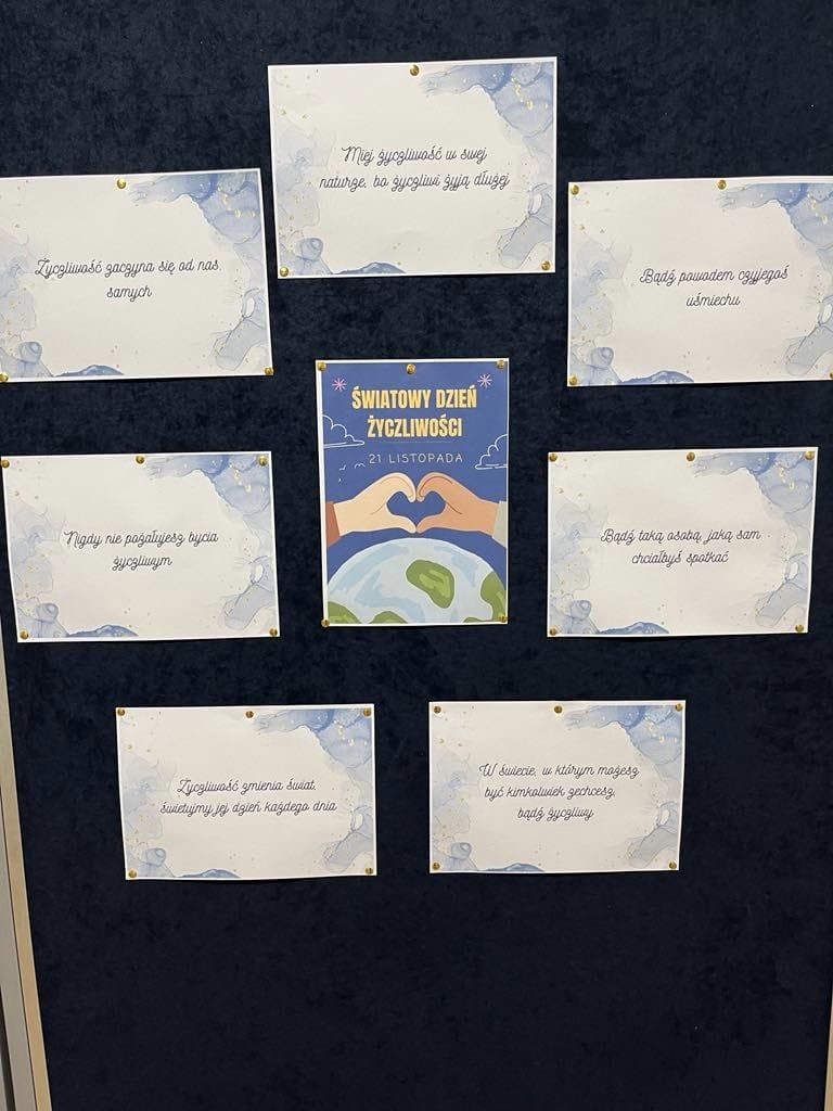 W zasadzie- postanowiliśmy go świętować przez cały tydzień, od 21 do 28 listopada uczniowie naszej szkoły brali udział w życzliwej akcji. Z tej okazji klasy 0-VIII miały do przygotowania plakaty związane z tym świętem.