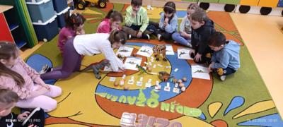 dzieci poznały zawód paleontologa. Zajęcia rozpoczęliśmy od zagadki obrazkowej- odszyfruj słowo. Przedszkolaki poznały kilka gatunków dinozaurów, jak również ciekawostek na ich temat. Nie zabrakło zabaw ruchowych, podczas których mogliśmy wcielić się w wybrane gatunki dinozaurów. Poznając zawód paleontologa dzieci mogły wcielić się w rolę naukowca odkrywając kości