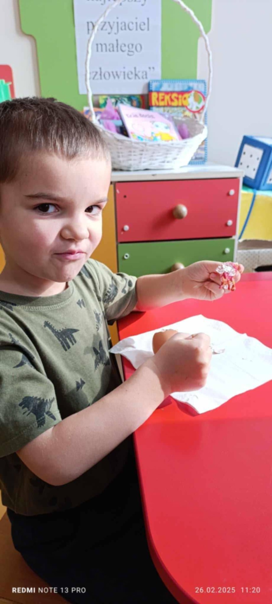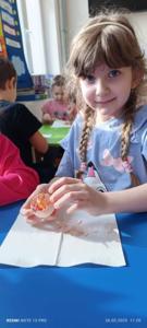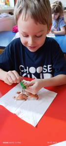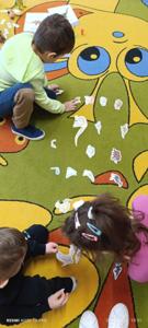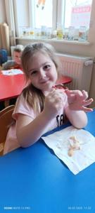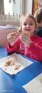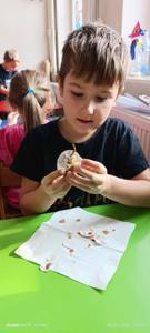 Na koniec dzieci wykonały piękne prace, jak również miały okazję sprawdzić co kryje się w jajku.