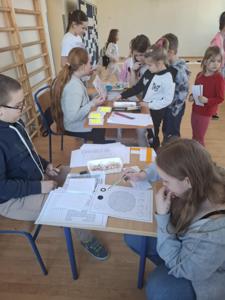 Podczas przerw uczniowie mieli okazję rozwijać swoje umiejętności matematyczne w specjalnie przygotowanych stacjach zadaniowych. Czekały na nich różnorodne wyzwania, takie jak: zadania dotyczące symetrii, sudoku, układanie tangramu, łamigłówki zapałczane oraz origami.
