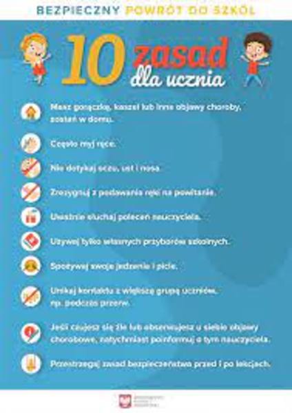 13.01.2021 Aktualności Powrót dzieci do szkoły. Informujemy, że od 18 stycznia, czyli po zakończeniu ferii zimowych, uczniowie z klas I-III wrócą do nauki stacjonarnej w szkole. Pozostali uczniowie nadal będą uczyć się zdalnie. https://www.gov.pl/web/edukacja-i-nauka/wytyczne-sanitarne-dla-klas-1-3 Czytaj więcej